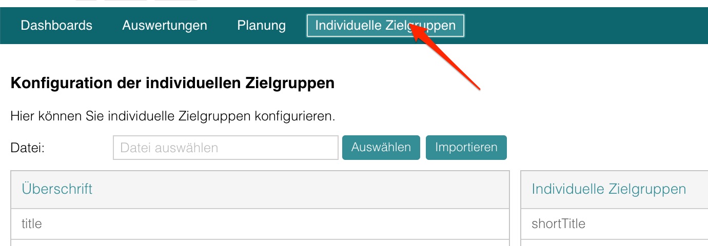 Der Importvorgang lässt sich starten, indem Sie im Menü den Reiter „Individuelle Zielgruppen“ auswählen, der nach Aktivierung des Zusatzmoduls zusätzlich zur Verfügung steht.