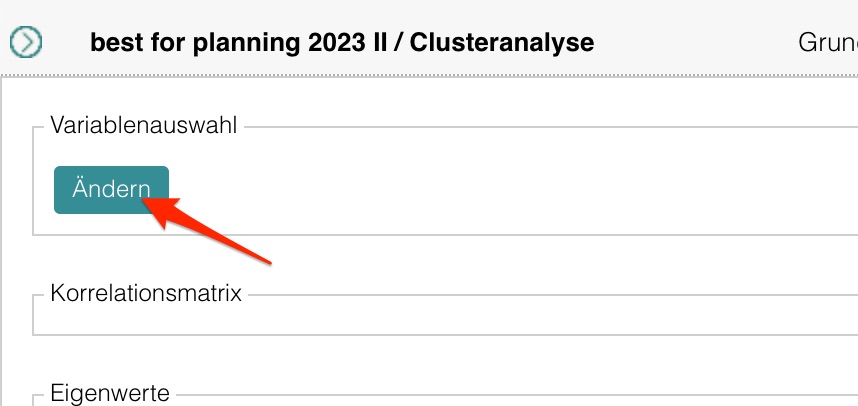 Der erste Schritt zur erfolgreichen Faktoren- / Clusteranalyse führt über die Variablenauswahl (Ändern-Button).